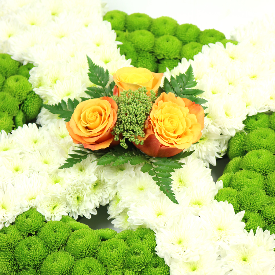 Welcome to a celebration of nature’s finest artistry. Our bouquet dazzles with white spray chrysanthemums, green spray chrysanthemums, and vibrant orange roses expertly arranged with lush greenery. Every bloom is hand-selected for its peak freshness and natural allure, ensuring a luxurious gift that truly speaks from the heart. This carefully crafted floral masterpiece is ideal for expressing love, admiration, or sincere congratulations.